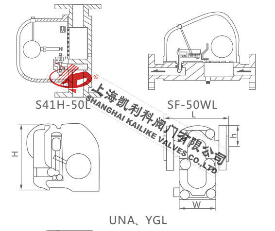 4、UNA23H、UNA26H杠桿浮球式疏水閥主要根據剖面、長度、高度、外形等作出說明。